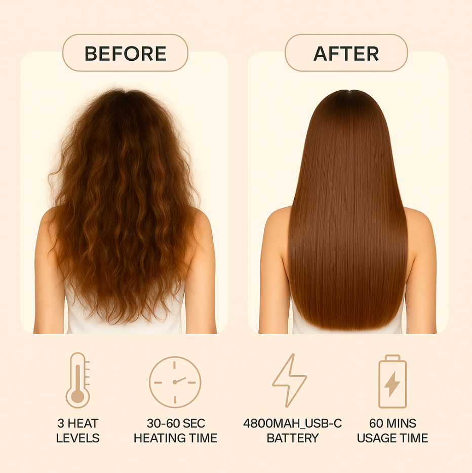 It has 3 heat levels ranging from 160°C (320°F) to 200°C (392°F), so you can choose the right one for your hair type.